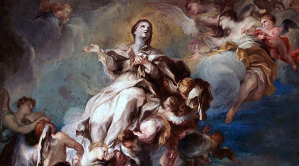 A Virgem, Mãe de Jesus, é elevada de corpo e alma à glória celeste. Uma subida suave, sem o adeus da morte que nos assusta, mas com a serenidade de quem cumpriu sua missão. Ela, a Cheia de Graça, não poderia conhecer a corrupção do túmulo. Seu corpo, templo do Verbo, foi poupado, subindo direto para junto de seu Filho, o Rei dos Céus.
